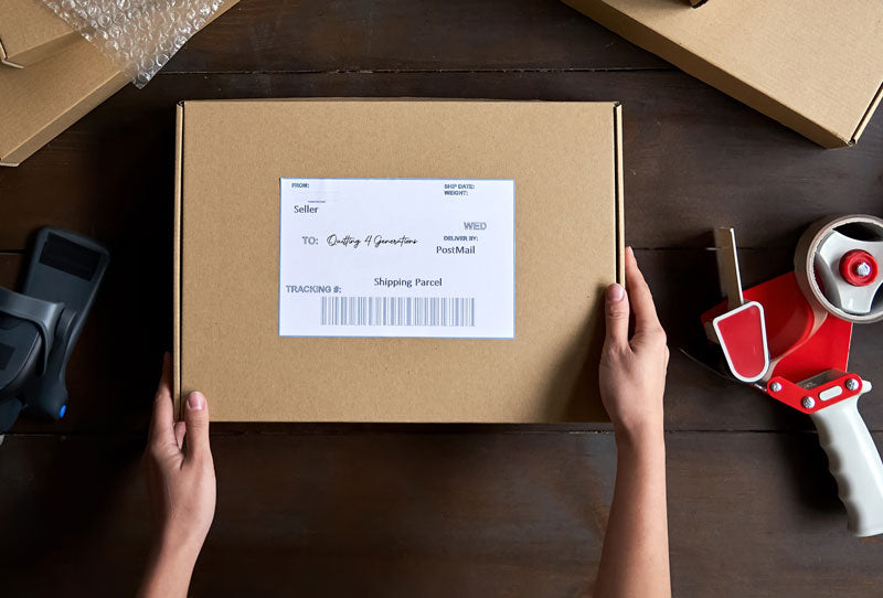 Ship or drop off your quilt top and backing. We suggest placing your top, backing and Intake Form in a plastic bag before placing in your shipping box.